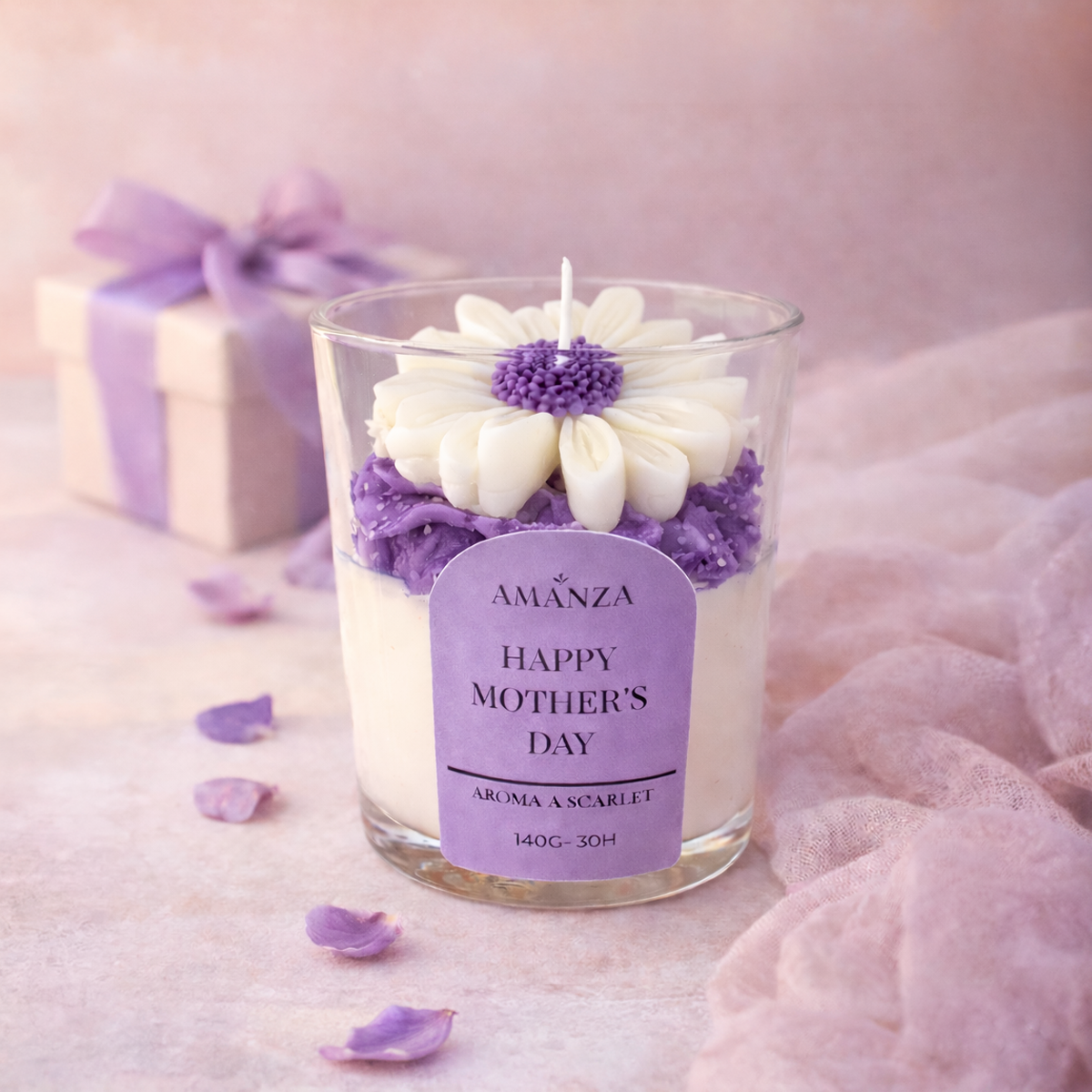 La Vela Aromática Día de la Madre de Amanza es una fragancia especial creada para celebrar con un detalle dulce, alegre y lleno de intención.