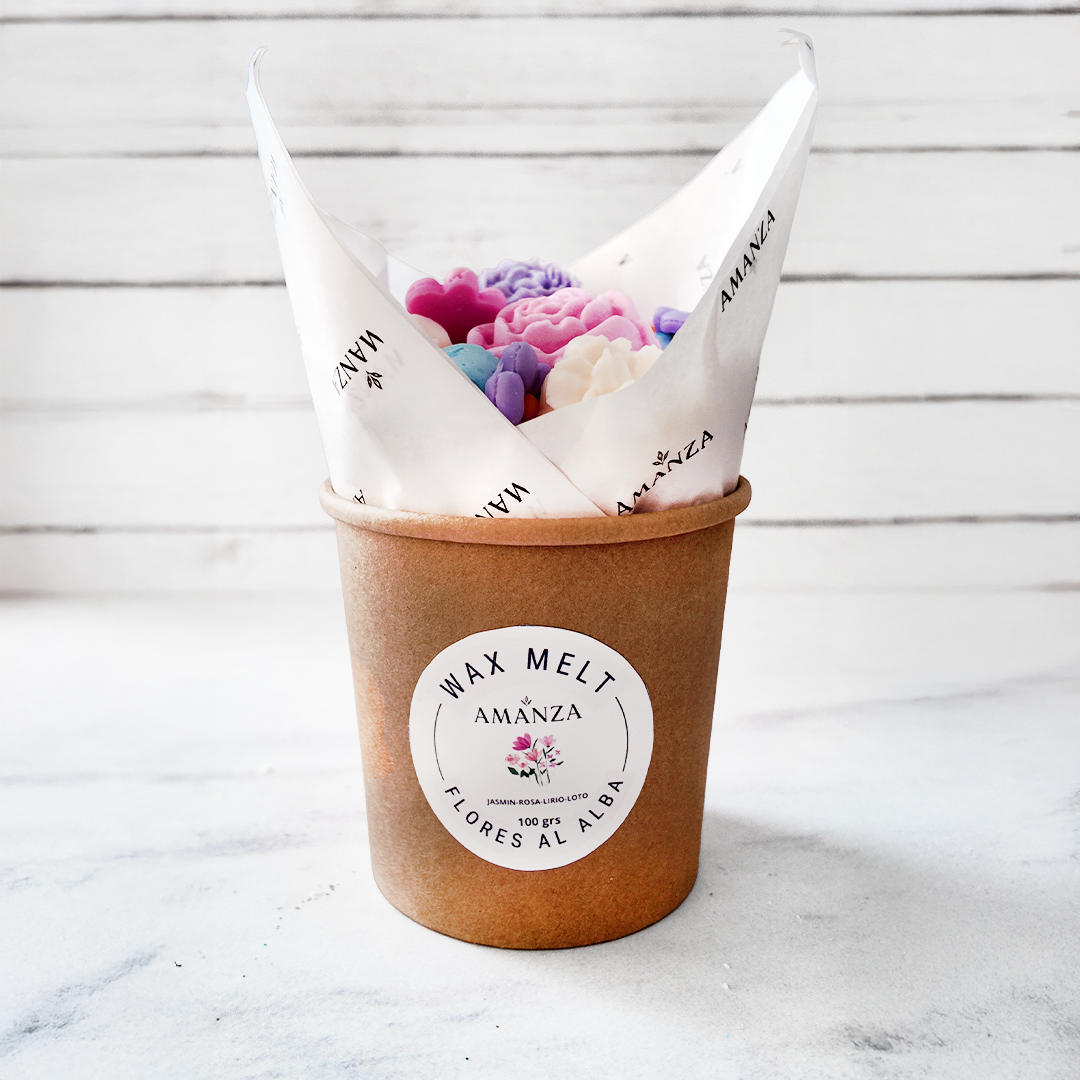 Despierta tus sentidos con la delicadeza de nuestro Wax Melt Flores al Alba. Confeccionado artesanalmente con cera de soja y perfumado con notas de jazmín, rosa, lirio y loto, este pack de 100 gramos libera un aroma floral fresco y armonioso, ideal para crear espacios serenos y románticos.